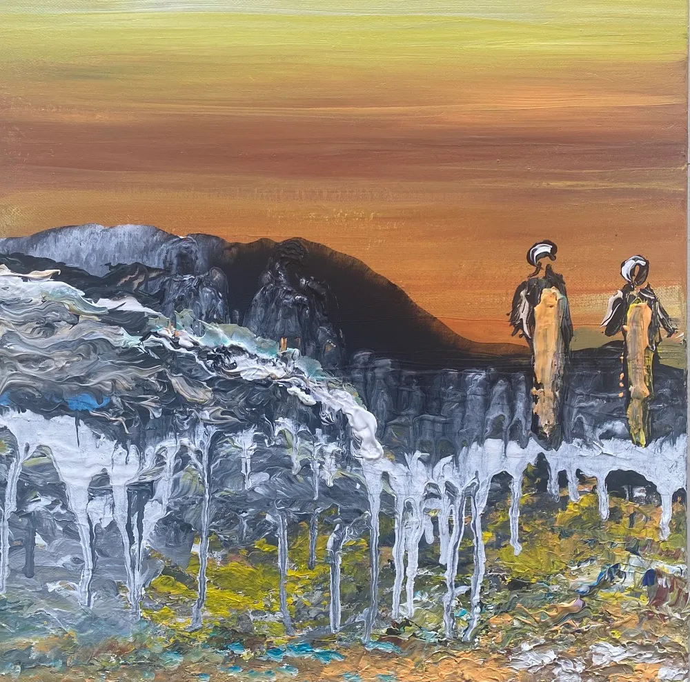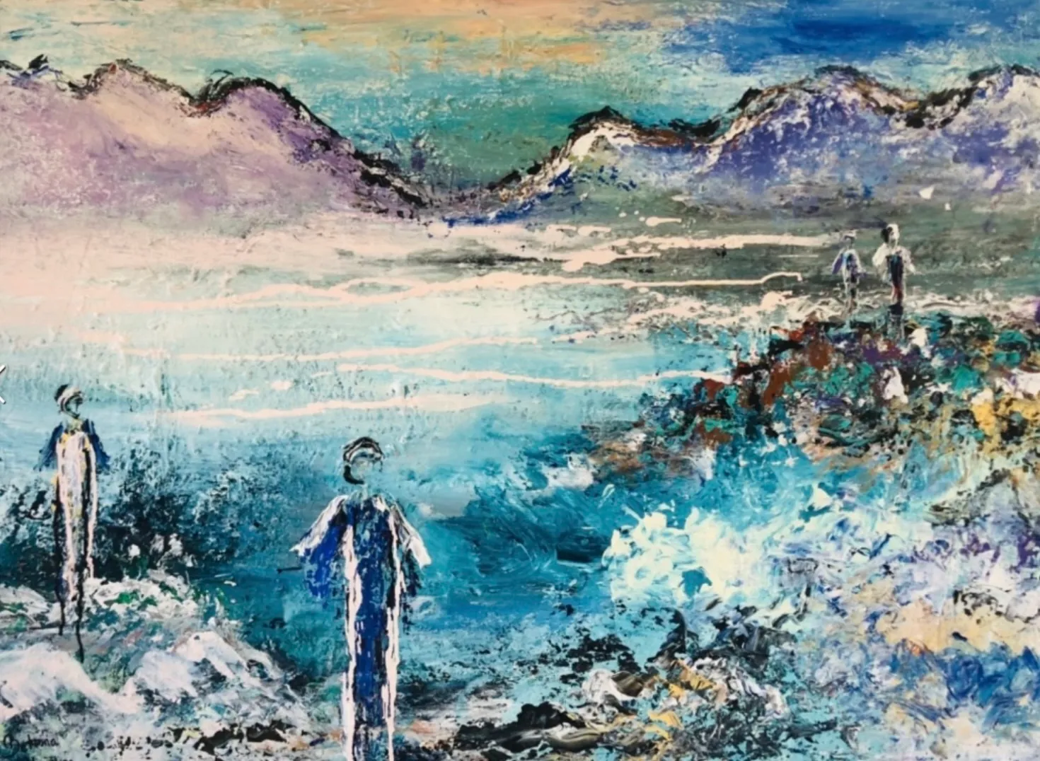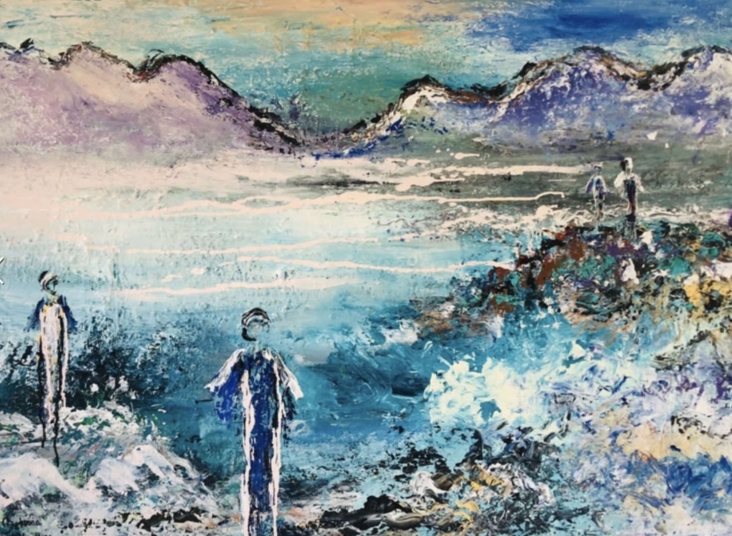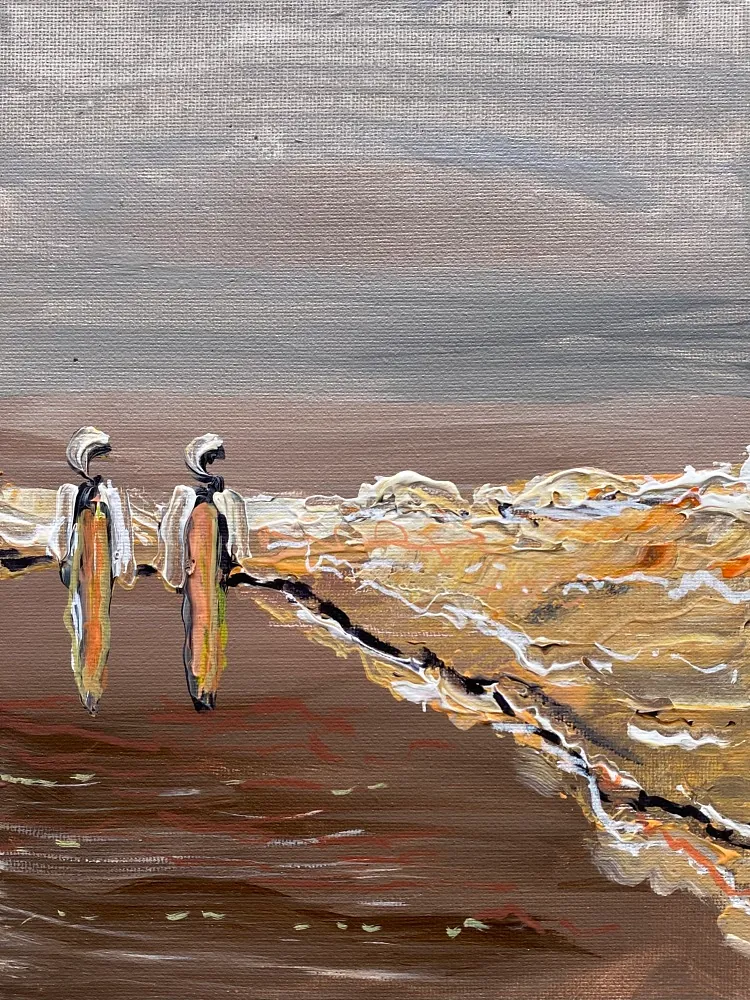 Brunt maleri “Fortællinger ved vandet” 90x135 cm 12,000.00 DKK
