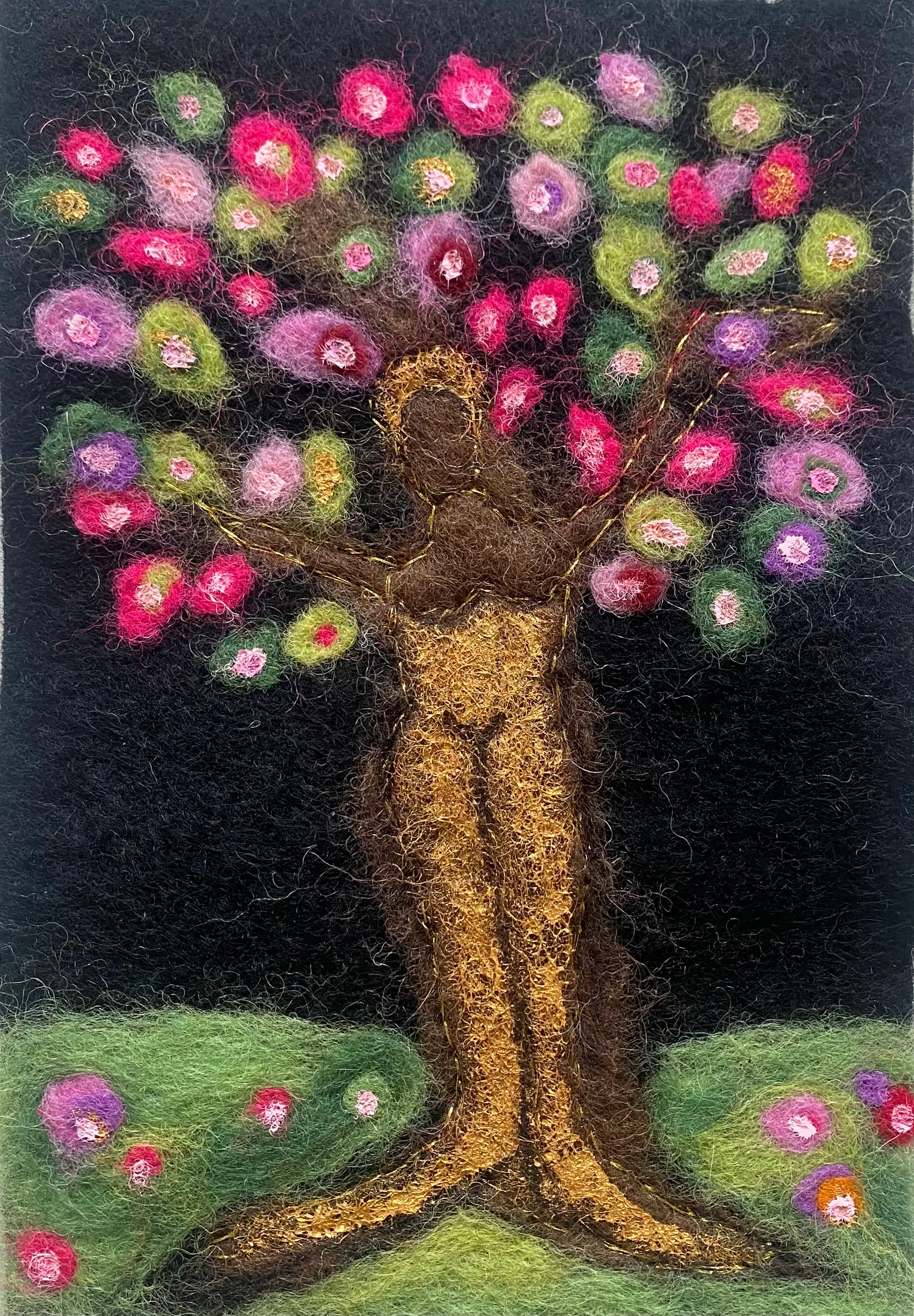 Filt,broderi og akrylmaling 21x14 cm. 400 kr.