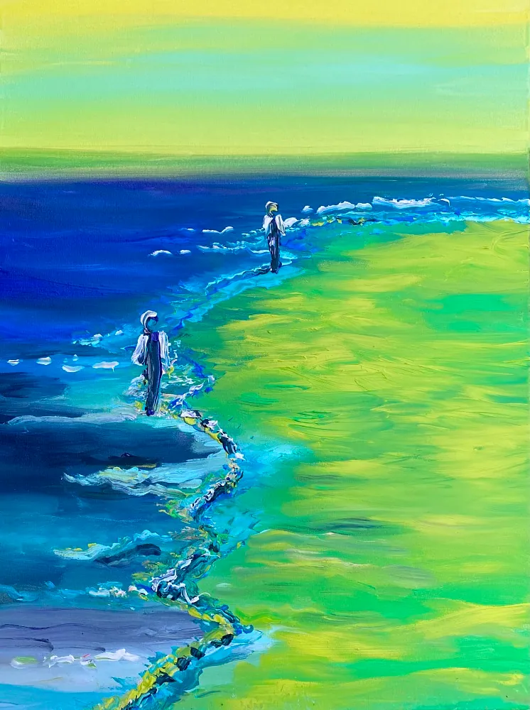 Grønt maleri “Coast Lovers” 60x80 cm 3,500.00 DKK