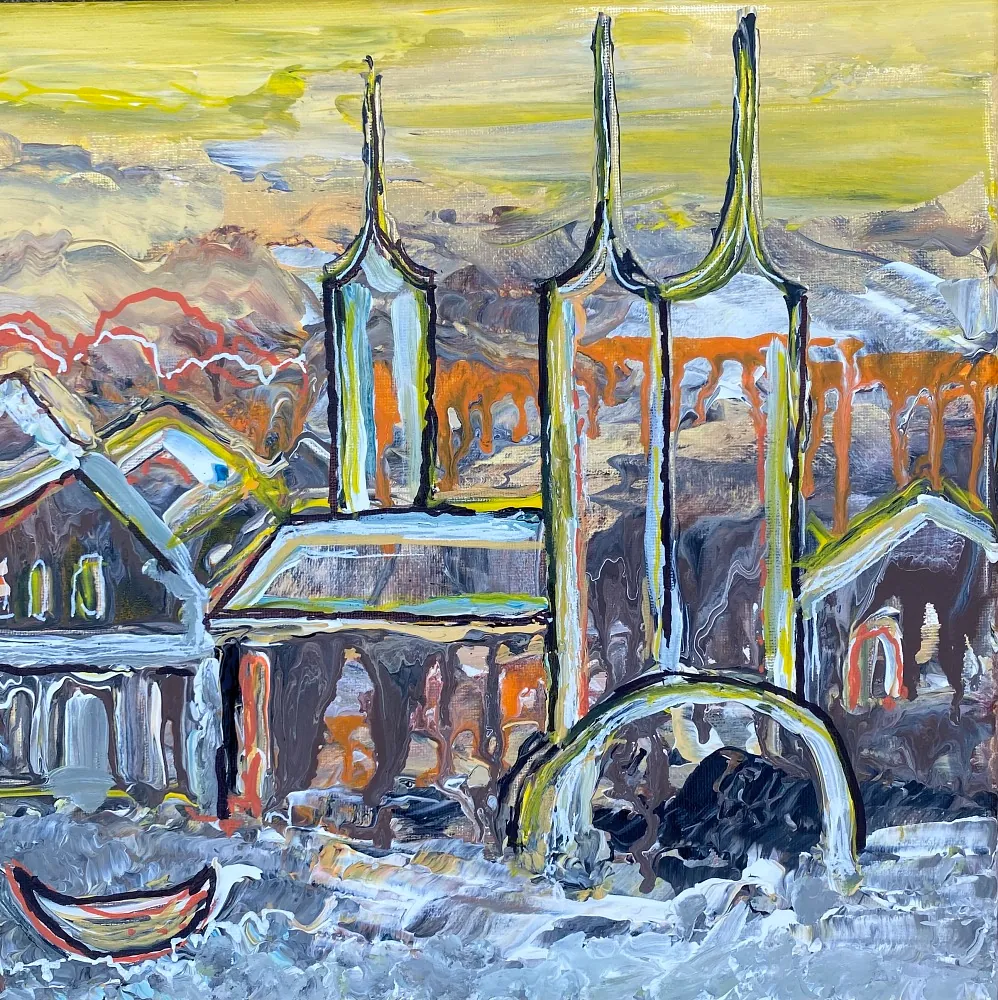 Grønt Maleri “Roskilde i grønt” 20x20 cm 500.00 DKK