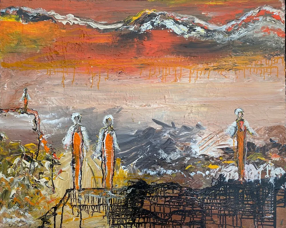 Orange maleri “ Trappen op til lyset” 60x80 cm 3,000.00 DKK