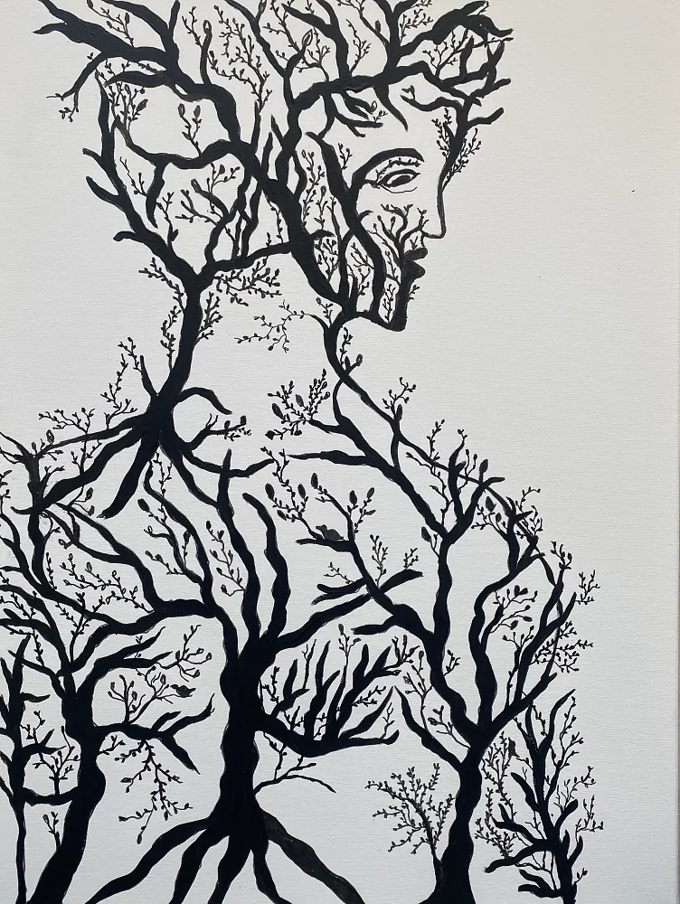 Sort hvidt maleri “Træ moder” 60x80 cm 2,000.00 DKK