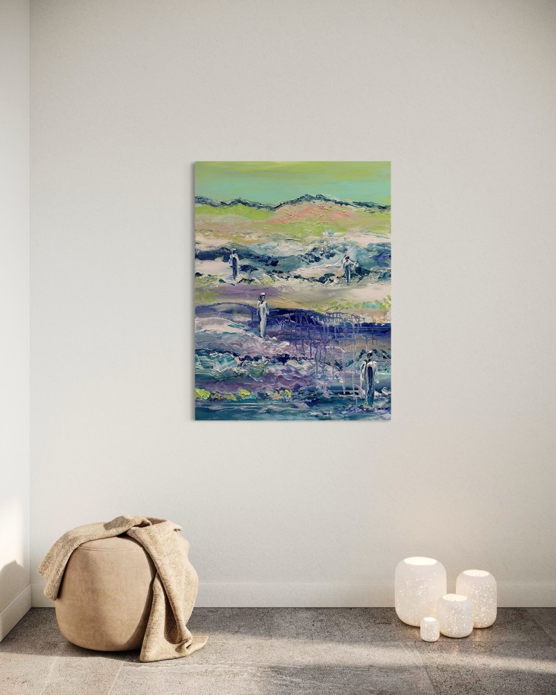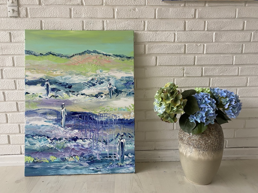 0. Blåt maleri “4 ved vandet” 60x80 cm